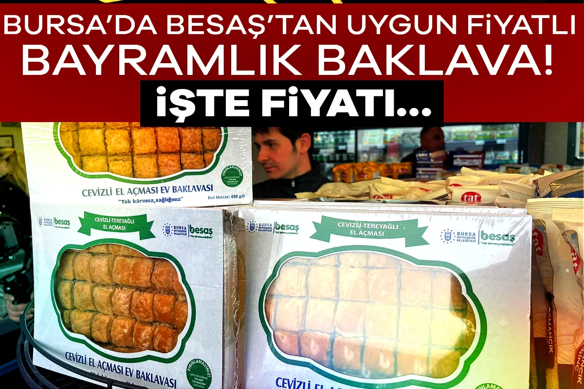 Ramazan ayı boyunca 450 gram Ramazan pidesini 25 TL'ye satarak vatandaşların takdirini kazanan BESAŞ bayram öncesi 380 TL'ye sattığı yarım kiloluk fıstıklı baklava ile Bursalıların bayramda ağzını tatlandıracak.