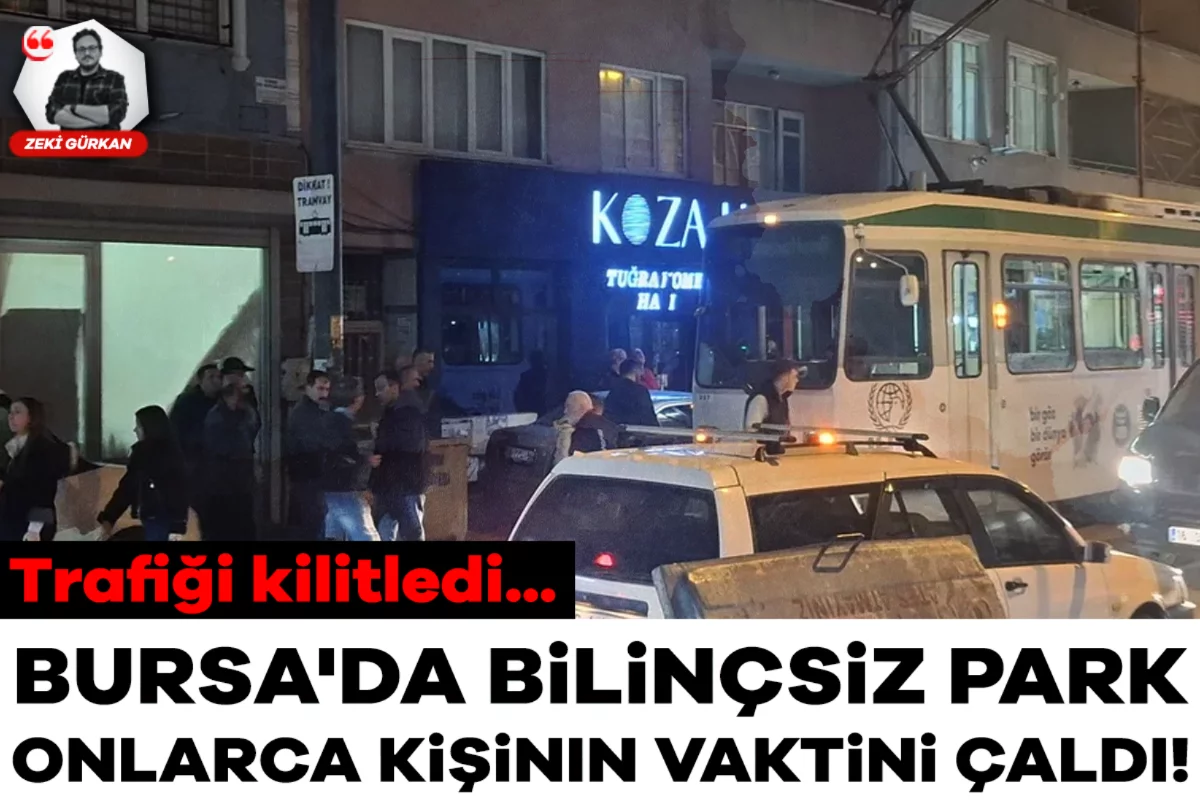 Bursa'nın Yıldırım ilçesi Davutkadı Mahallesi'nde tramvay yoluna park eden otomobil, yolcuları ve sürücüleri mağdur etti.