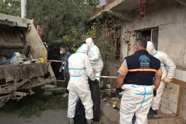 Bursa'da yalnız yaşayan yaşlı adamın evi çöplüğe döndü. Mahalle sakinlerinin ihbarı üzerine eve gelen ekipler korkunç manzarayla karşılaştı. Ağır koku, yemek artığı ve böceklerin sardığı evden 2 kamyon çöp çıktı.