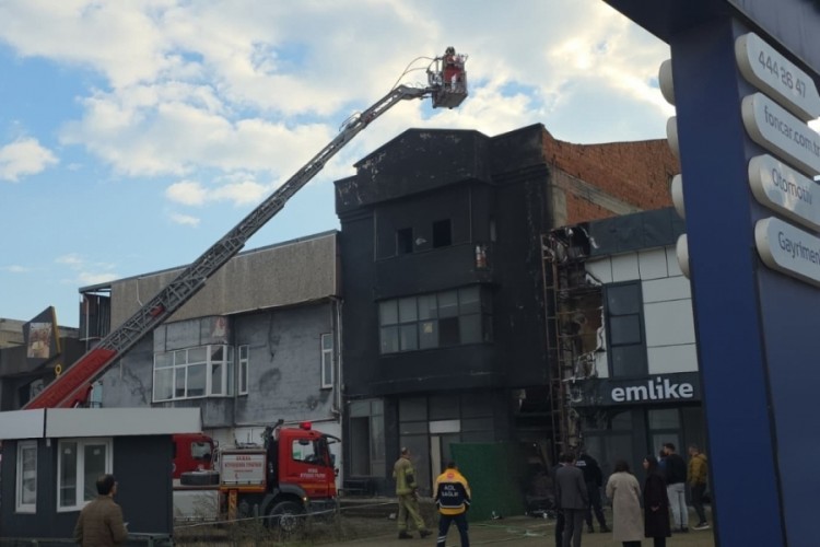 Ekiplerin müdahalesiyle söndürülen yangında, bir minibüs, iş yerinin reklam tabelası ve bina giriş kapısı zarar gördü.