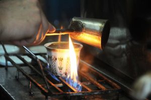 Bursa Fidan Han'da ikinci kuşak çay ocağı işletmecisi Murat Ömür, 20 yıl önce Arnavut bir müşterisinin özel isteği üzerine Türk kahvesini fincanda pişirmeye başladı. Farklı lezzeti ve sunumuyla bölgedeki esnafın da ilgisini çeken kahveye talep her geçen gün arttı.