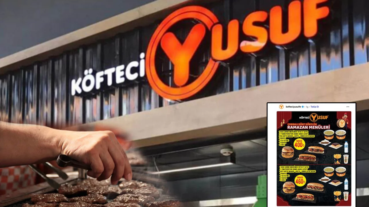 Bursa'da da restoranları olan Köfteci Yusuf, Ramazan ayına özel hazırladığı iftar menülerinin fiyatlarını duyurdu. Farklı porsiyon ve içerik alternatifleriyle hazırlanan menüler, 400 liradan başlayarak 1.580 liraya kadar uzanıyor.
