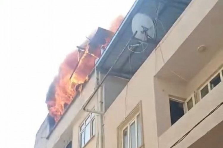 Bursa'da 4 katlı bir binanın en üst katında çıkan yangında daire kullanılamaz hale geldi.