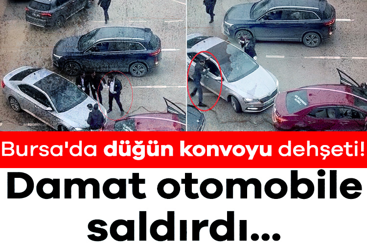 Olay, dün saat 12.00 sıralarında Nilüfer ilçesi Fatih Sultan Mehmet Bulvarı'nda meydana geldi. 34 plakalı bir otomobil, ara sokaktan inip bulvara girmek istediği sırada düğün konvoyuna denk geldi. Konvoydaki araçlardan birinin arkasına girmek isteyen sürücünün önü, konvoydaki diğer araçlar tarafından kesildi. Araçlarından inen düğün sahipleri, otomobil sürücüsüne hakaret edip, camı ve kaportayı yumrukladı. Otomobilin ön camına vuran damat, arkadaşları tarafından uzaklaştırıldı. Bu sırada bir başka davetli gelip, bu kez içinde ailenin bulunduğu otomobilin ön sağ camına yumruk attı.