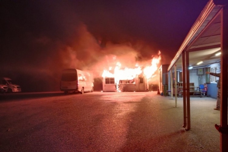 Mudanya Yumurtatepe mevkiinde bulunan minibüs duraklarında yangın çıktı. Bitişik haldeki iki adet mobo minibüs durağı alevlere teslim olurken, yangın bir minibüse de sıçradı. Yakındaki farklı bir konteyner ise kısmen yandı.
