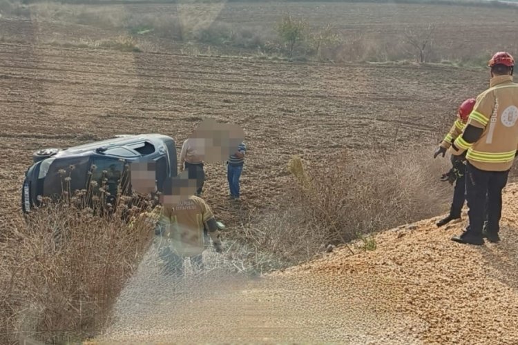 Bursa'nın İnegöl ilçesinde meydana gelen kazada kontrolden çıkan otomobil şarampole yuvarlandı.