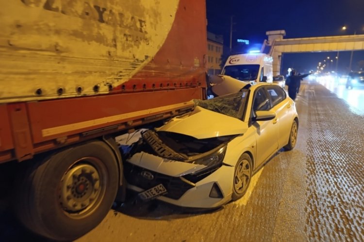 Bursa'nın İnegöl ilçesinde kontrolden çıkıp, park halindeki TIR'a arkadan çarpan otomobilin sürücüsü yaralandı.