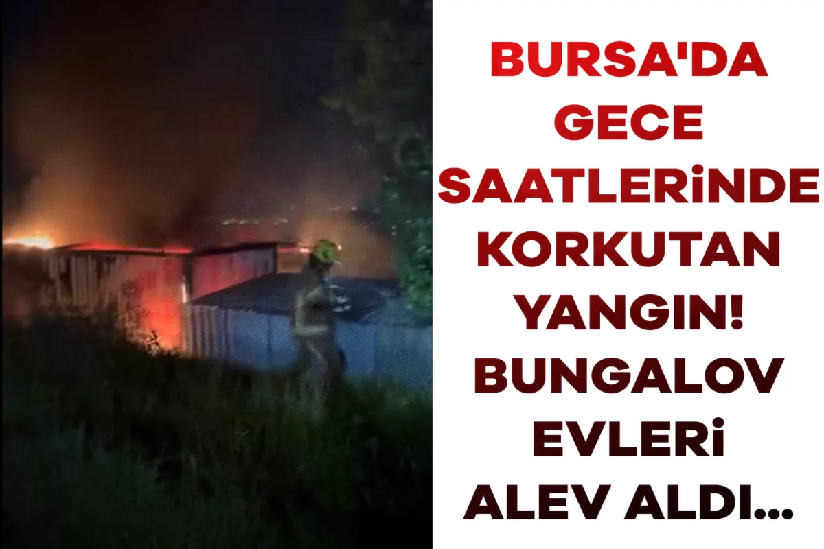Bursa'nın Nilüfer ilçesine bağlı Tahtalı Mahallesi'nde gece saatlerinde bungalov evlerinin bulunduğu bölgeden alevler yükseldi.