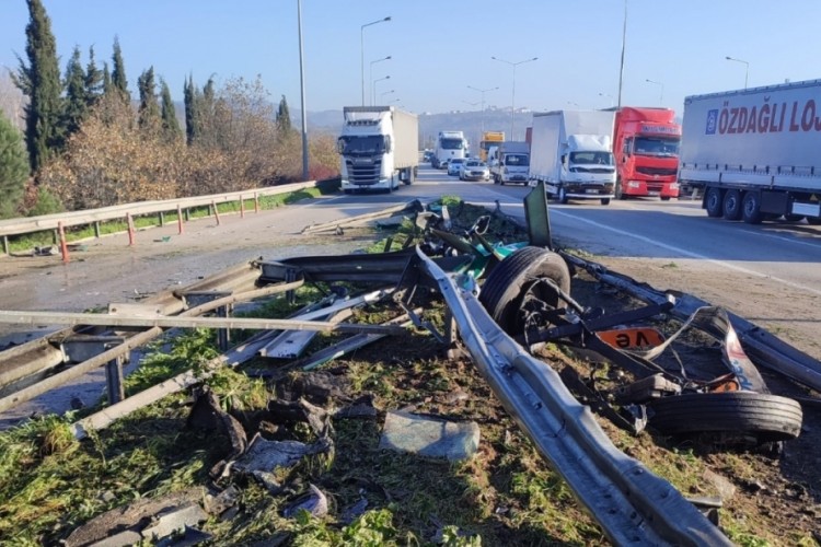 Kaza bugün 10.30 sıralarında Bursa'da çevre yolu üzerinde meydana geldi. Alınan bilgiye göre İzmir yönüne gitmekte olan Orhangazi Taşıyıcılar Kooperatifi'ne bağlı Orhangazili 27 yaşındaki Ahmet Uzun'un kullandığı kamyon bilinmeyen bir nedenle kontrolden çıkarak dinlenme tesisleri girişindeki bariyerlere çarptı.