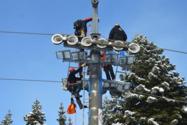 Kış turizminin gözde merkezlerinden Uludağ'da sezon hazırlıkları sürüyor. Uludağ'ın zorlu kış şartlarında teleferik ve telesiyejlerde mahsur kalma ihtimaline yönelik kar yağışı altında yapılan tatbikat, gerçeği aratmadı.