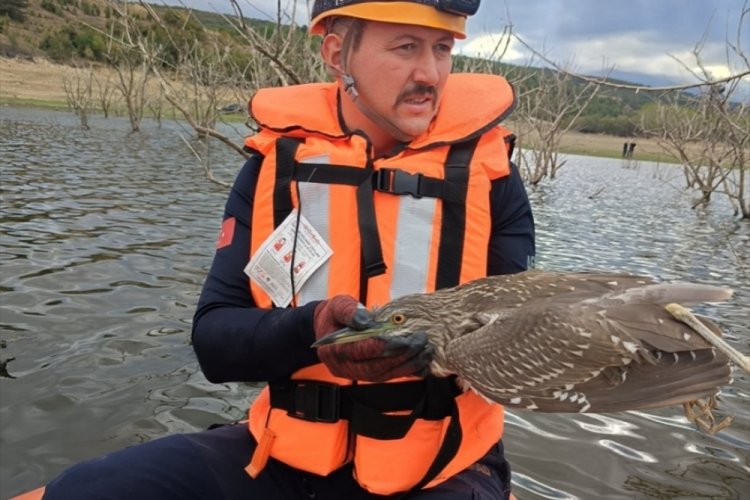 Bursa'nın İnegöl ilçesinde misinaya takılıp mahsur kalan yabani kuş, AFAD ekiplerince kurtarıldı.