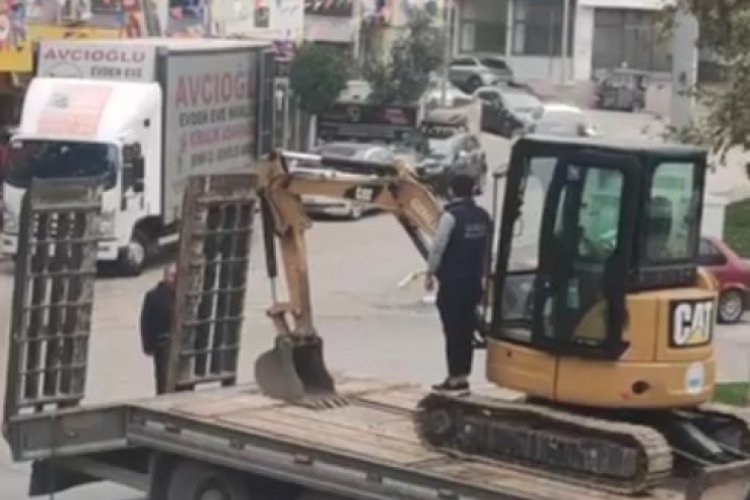 Gemlik ilçesi Ahmet Süren Meydanı'nda bir çekicinin sürücüsü sirenlerin çalmasıyla birlikte aracını durdururken, çekicinin taşıdığı iş makinesinin operatörü de kabinden çıkarak saygı duruşunda bulundu.