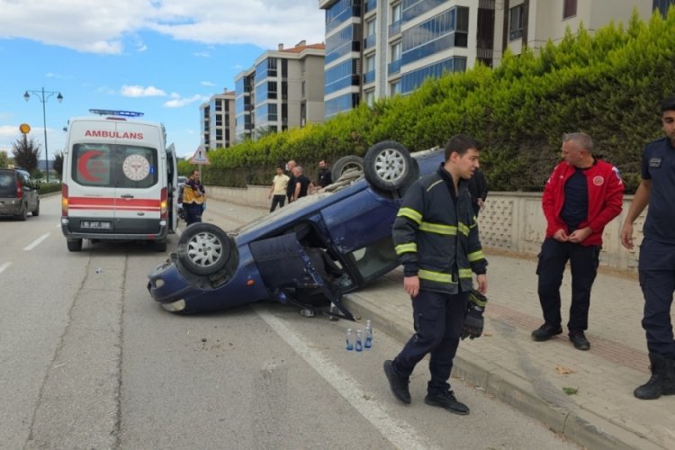 Süleymaniye Mahallesi'nde Ö.A. (19) yönetimindeki 16 BCA 801 plakalı otomobil, sürücüsünün direksiyon hakimiyetini kaybetmesi üzerine kontrolden çıkarak kaldırıma çarpıp ters döndü.
