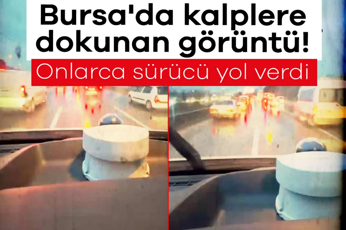 Bursa'da iş çıkışı ve iftar saatine yakın yoğun trafikte ilerlemeye çalışan ambulansa sürücüler örnek bir davranış sergileyerek yol verdi. O anlar ambulansın araç kamerasına yansıdı.