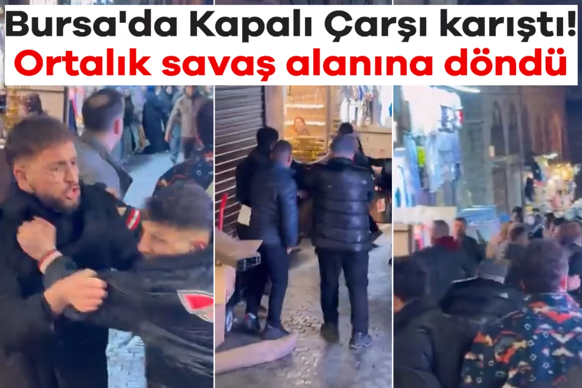 Bursa'da tarihi çarşıda iki grup arasında çıkan kavga, adeta meydan muharebesine döndü. Yumrukların havada uçuştuğu anlar saniye saniye kameraya yansırken, panik yaşayan vatandaşlar olay yerinden uzaklaşmaya çalıştı.