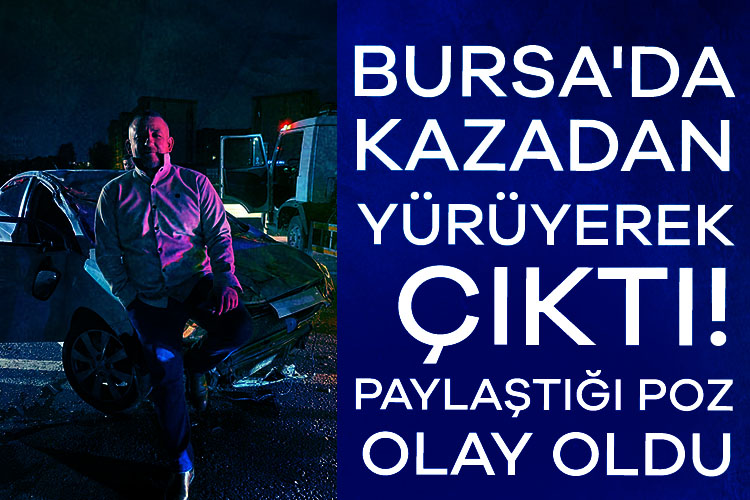 Bursa'nın Mudanya ilçesinde kazadan burnu bile kanamadan kurtulan araç sürücüsü, hurdaya dönen otomobilin önünde poz verdi.