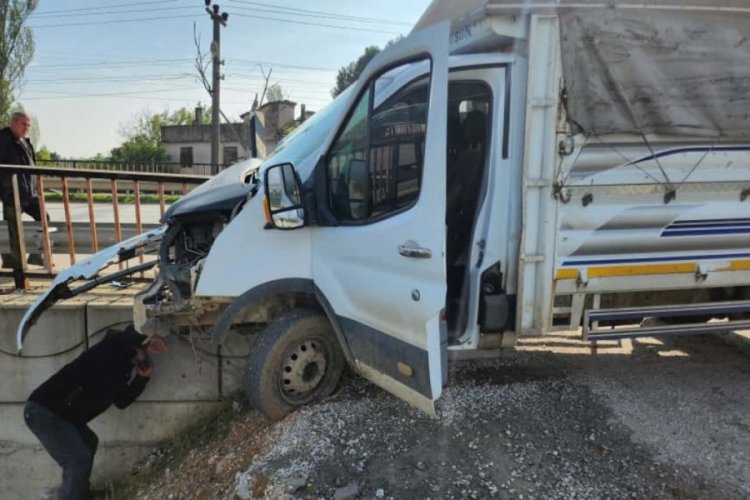 Bursa'nın Orhangazi ilçesinde İznik yolu üzerinde meydana gelen trafik kazasında, kontrolden çıkan kamyonet köprü korkuluklarına çarptı. Aracın dereye uçmaktan son anda kurtulduğu olaydan sürücü yara almadan kurtuldu.