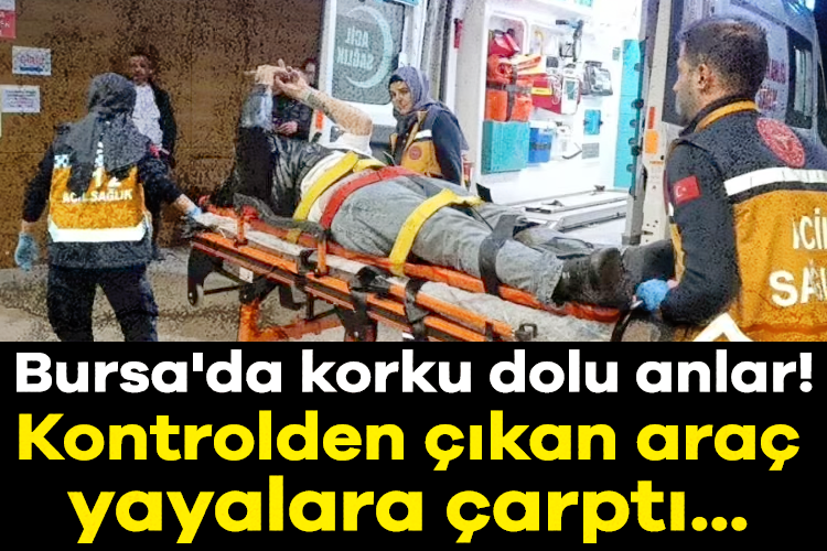Kaza saat 23.00 sıralarında Osmaniye Mahallesi Ahmet Akyollu Caddesi üzerinde meydana geldi. Cadde üzerinde seyir halinde sürücü Ufuk S. (36) yönetimindeki 16 BID 977 plakalı otomobil, sürücüsünün kontrolünden çıkarak yaya geçidinden geçmek isteyen 3 yayaya ve trafik levhasına çarptı. Kaza sonucu 2 yaya şans eseri yaralanmazken, diğer yaya Burak A. (30) yaralandı. Yaralı, kaza yerine sevk edilen ambulansla İnegöl Devlet Hastanesi'ne kaldırıldı.