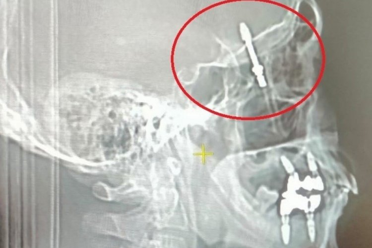 Baygınlık geçiren Yılmaz, kliniğin kendi aracıyla hastaneye kaldırıldı. Tomografi çekiminde vidanın beynine kadar ilerlediği ortaya çıktı. Acil ameliyata alınan talihsiz adam, saatler süren operasyonla ölümden döndü.
