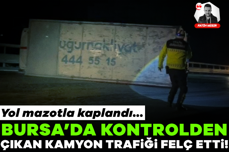Bursa'nın İznik ilçesinde sürücüsünün direksiyon hakimiyetini kaybettiği kamyon devrildi. Kazada yaralanan sürücü hastaneye kaldırılırken, yola dökülen mazot trafiği felç etti.