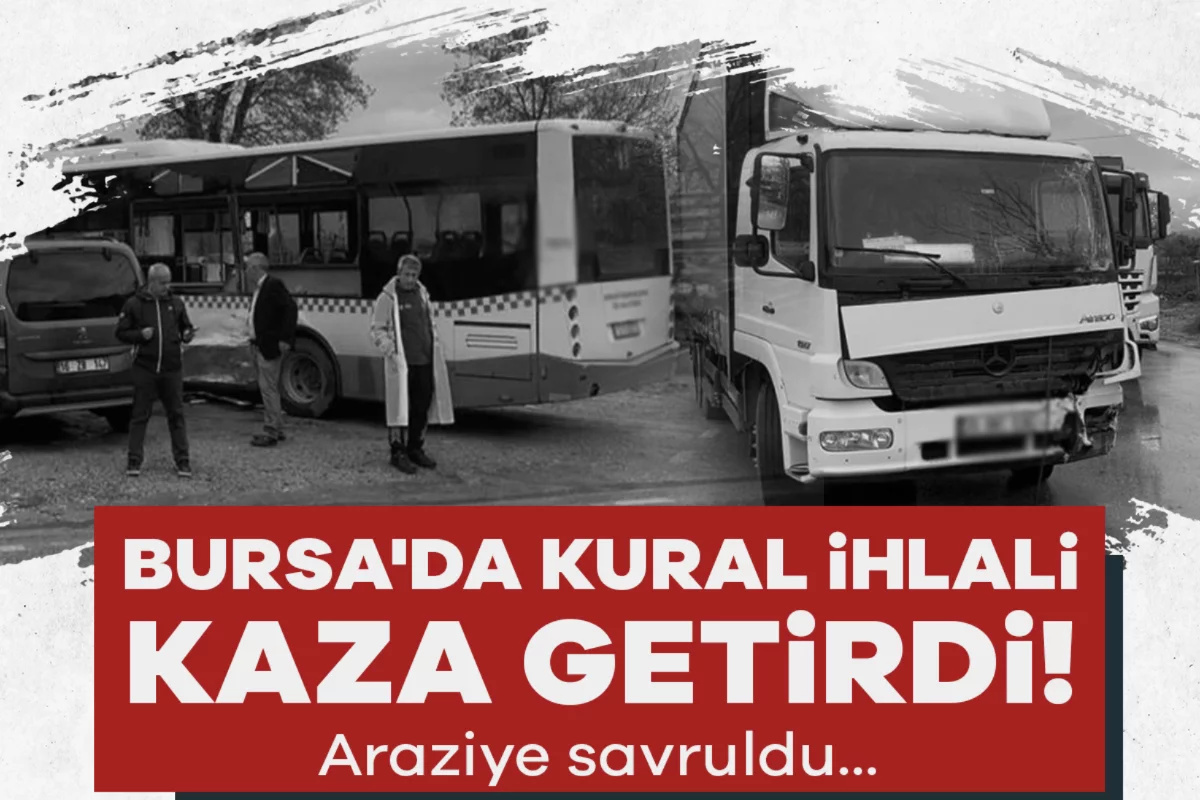 Kaza, merkez Osmangazi ilçesi Demirtaş Mahallesi'nde meydana geldi. Edinilen bilgilere göre A.T., idaresindeki belediye otobüsüyle tali yoldan ana yola çıkış yaptığı sırada 'dur' levhasına uymayarak kontrolsüz şekilde kavşağa girdi. Bu esnada ana yol üzerinde seyir halinde olan D.A. yönetimindeki 35 BNT 938 plakalı nakliye kamyonu, yola çıkan otobüse çarptı. Çarpışmanın etkisiyle belediye otobüsü kontrolden çıkarak savruldu ve yol kenarında bulunan boş araziye çıktı.