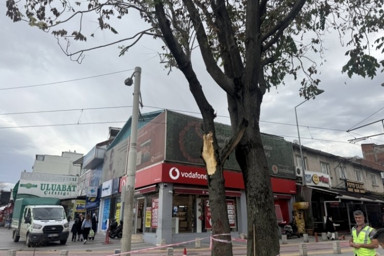 Bursa'da kuvvetli rüzgar nedeniyle çok sayıda ağaç devrildi, bazı araçlar zarar gördü.