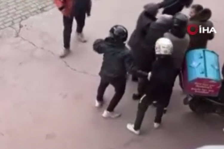 Bu sırada bölgede bulunan 5-6 motosikletli kurye ise yaşlı kadının önünde ve yanında durarak rüzgâra karşı siper oldu. Vatandaşların yardımıyla yaşlı kadın güvenli bir noktaya ulaştırıldı.