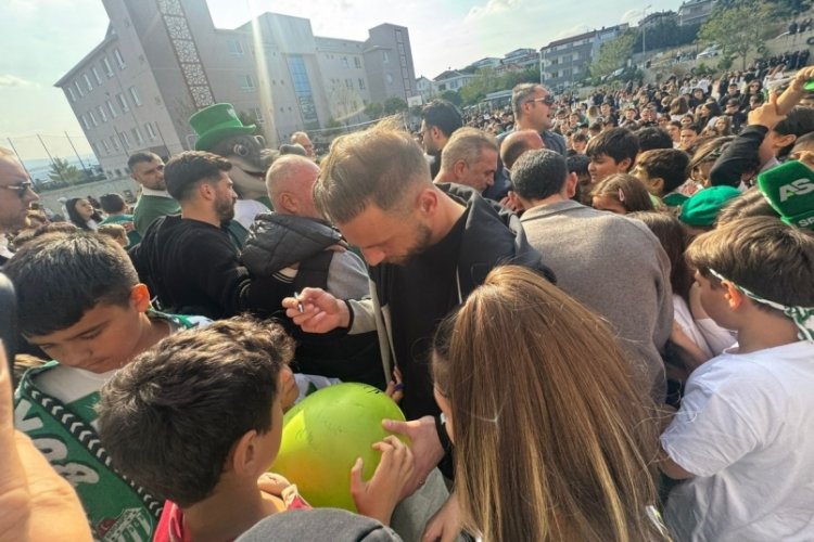 Bursaspor Başkanı Enes Çelik, Teknik Direktör Tahsin Tam ve Bursasporlu futbolcuların Özlüce Aziz Sancar Ortaokulu'na gerçekleştirdiği ziyarete öğrencilerin ilgisi yoğun oldu.