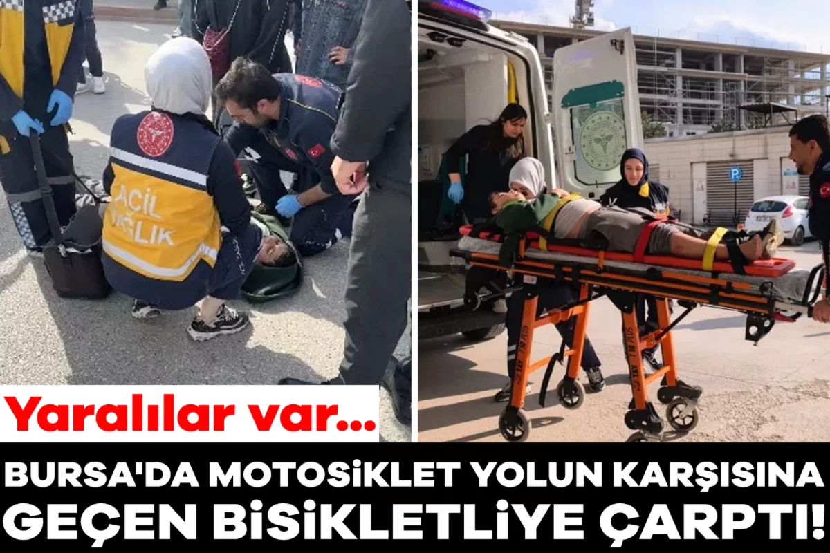 Bursa'nın İnegöl ilçesinde motosiklet, yolun karşısına geçmeye çalışan bisikletliye çarptı. Kazada 1'i çocuk, 3 kişi yaralandı.