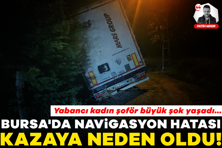 Bursa'nın Orhangazi ilçesinde meydana gelen olayda yabancı uyruklu kadın sürücünün kullandığı yüklü bir tır, navigasyonun yanlış yönlendirmesi ile ana yoldan çıkarak köyün içindeki arazi yolundan geçmeye çalıştığı esnada bir bağ evinin çitlerine doğru yan yattı. Burada mahsur kalan tır, çekici yardımıyla bulunduğu yerden güçlükle çıkarılabildi.