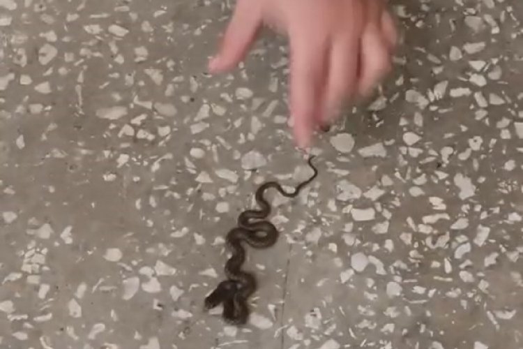 Sabah saatlerinde derse girmek üzere koridorda ilerleyen öğrenciler, yerde hareket eden bir yavru yılan fark etti. Durumu hemen öğretmenlerine bildiren öğrencilerden kimi eline almak istedi. Öğretmenin ikazıyla yılandan uzaklaşan öğrencilerden kimi ise korktu.