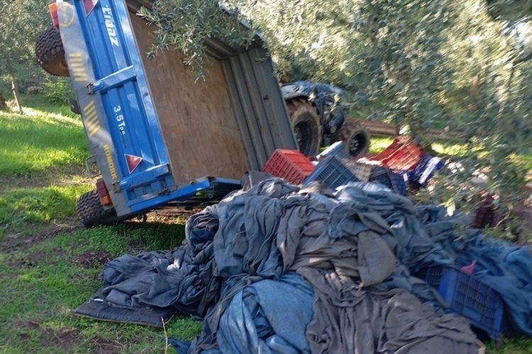 Alınan bilgiye göre üzerinde, topladıkları zeytinler ile tarladan yola çıkanların olduğu traktörün römorku henüz bilinmeyen bir nedenle kontrolden çıkarak tarla içine devrildi.