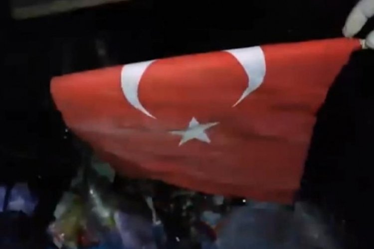 Bursa'da çöp konteynerlerini karıştırarak israfa dikkat çeken iki arkadaş, bu kez gördükleri manzarayla sarsıldı. Yusuf Emre Kürkçü ve Engin Altın, çöpten buldukları Türk bayrağını araçlarına asarak, "Bu bizim namusumuz" dedi.