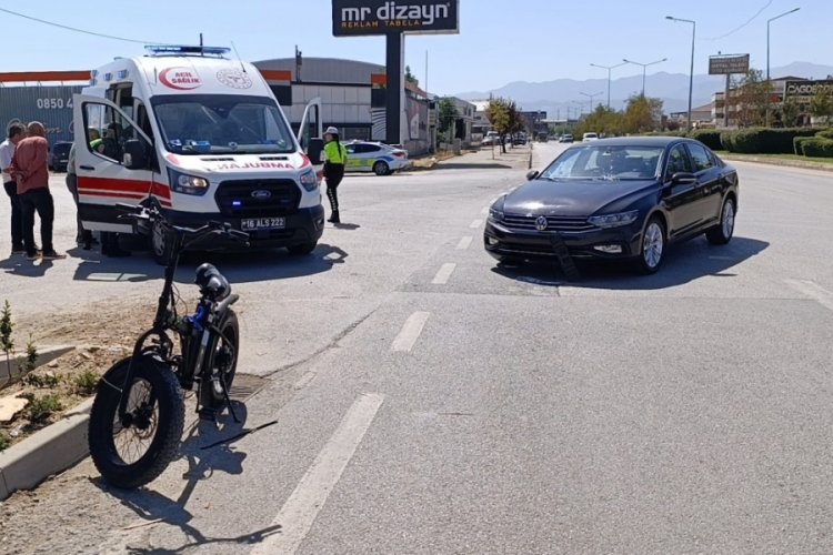 Bursa'nın İnegöl ilçesinde otomobil ile çarpışan elektrikli bisikletin sürücüsü Recep S. (72) yaralandı. Hastanede tedaviye alınan sürücünün hayati tehlikesinin bulunmadığı öğrenildi.