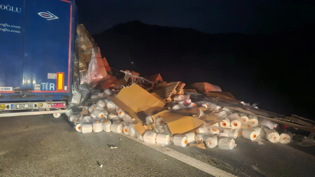 Kaza bugün otoyolun Gemlik yakınlarında, İstanbul istikametinde meydana geldi. Alınan bilgilere göre Gemlik serbest bölge limanına giden bobin yüklü tır kontrolden çıkarak savruldu ve devrildi.