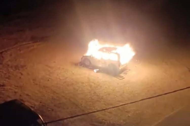 Bursa'nın Karacabey ilçesinde park halindeki bir araç alev alev yandı. İtfaiye ekiplerince alevler söndürülürken, araç kullanılamaz hale geldi.