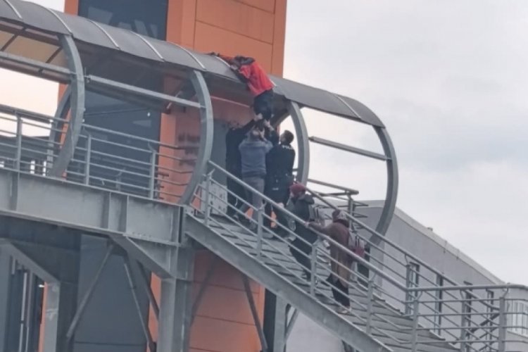 Olay yerine 112, polis ve itfaiye arama kurtarma ekipleri sevk edildi. Polis ekipleri şahsı yarım saat süren ikna çalışması sonucu çıktığı yerden indirdi. İkna çalışmalarını meraklı gözlerle izleyen öğrenciler, üst geçitten adamın indirilmesini sağlayan polis ekiplerini alkışladılar.