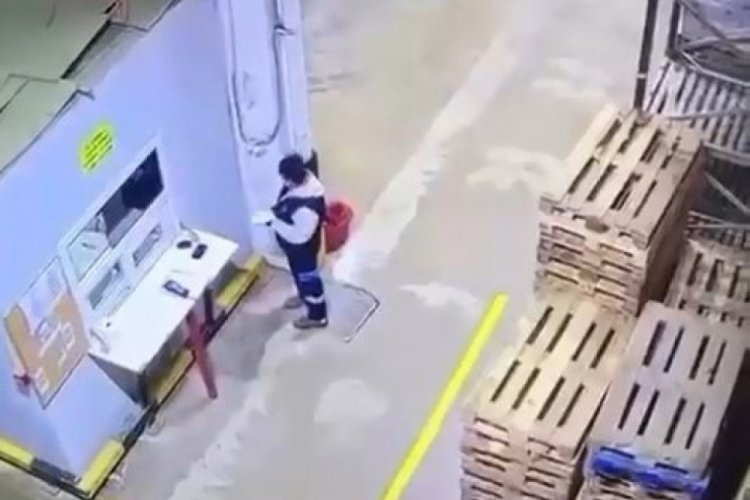 Bursa'da forklift tarafından üst üste dengesiz yerleştirilen paletler, devrildi. O esnada paletlerin yanında olan bir kadın çalışan, refleksi sayesinde paletlerin altında kalmaktan kurtuldu.