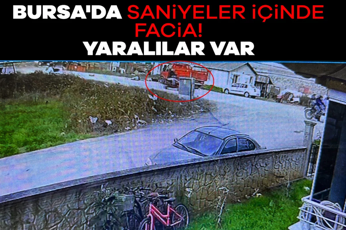 Bursa'nın İznik ilçesinde kamyonet ile kafa kafaya çarpışan motosikletin sürücüsü A.S. ile arkasındaki M.A. yaralandı. Kaza anı ise çevredeki bir binanın güvenlik kamerasına yansıdı.