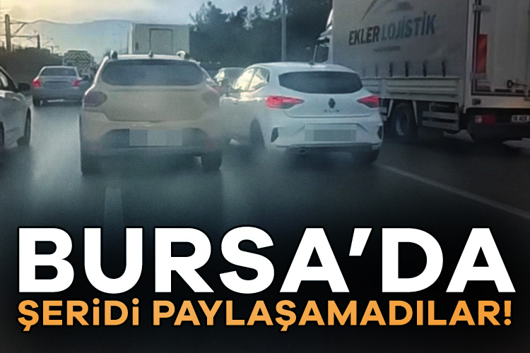 Osmangazi ilçesi Ankara Yolu'ndan kent merkezi istikametine seyir halinde olan iki otomobilin sürücüsü, bir anda araçlarıyla aynı şeride geçti. Sürücüler, araçlarını birbirlerinin üzerine sürerek trafiği tehlikeye attı. Aynı şeridi paylaşmaya çalışan sürücülerin 'şerit' kavgası, arkadan gelen bir motosiklet sürücüsünün kask kamerasına yansıdı.