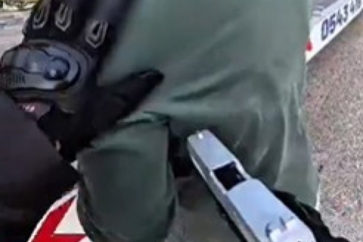 Şüpheliler, silah doğrultarak motosikleti çekiciden indirip olay yerinden uzaklaştı. O anlar eylemi gerçekleştirenler tarafından kaydedilerek sosyal medyada yayıldı.