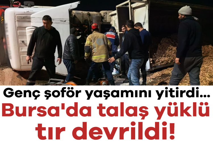 Bursa'nın İnegöl ilçesinde talaş yüklü TIR'ın devrilmesi sonucu dorsenin altında kalan sürücü Emrah Aydın (29), ağır yaralı olarak kaldırıldığı hastanede hayatını kaybetti.