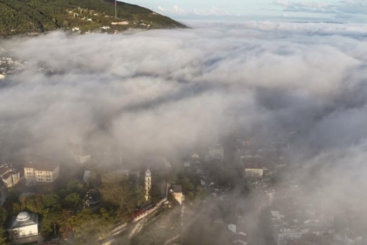 Bursa'da etkili olan yoğun sis, kartpostallık görüntüler ortaya koydu. Bursa'nın tarihi mekanları, Ulu Cami, Tophane ve diğer bölgeleri sis altında seyrine doyumsuz anları ortaya koydu.