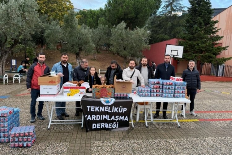 Bursa'nın Orhangazi ilçesinde geçtiğimiz aylarda kurulan Tekneliküp Kültür ve Dayanışma Derneği yönetimi tarafından okul önlerinde kurulan stant ile okula sabah derslerine giden öğrencilere simit ve ayran dağıtımı yapıldı.