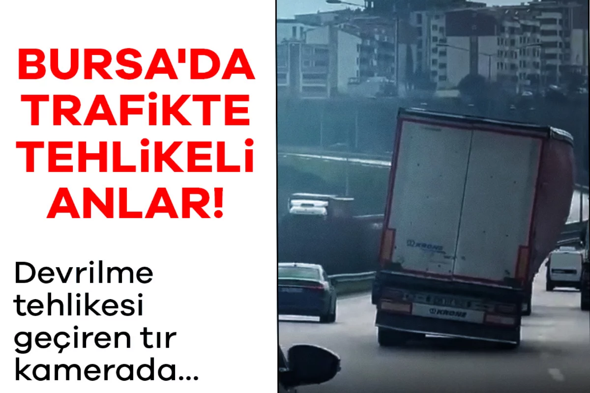 Bursa'da seyir halindeki bir tırın yolda yan şekilde ilerlemesi trafikte tehlikeli anlara neden oldu. Zaman zaman devrilme tehlikesi geçiren tır, çevredeki sürücülere korku dolu anlar yaşattı.
