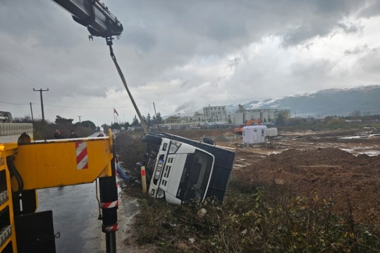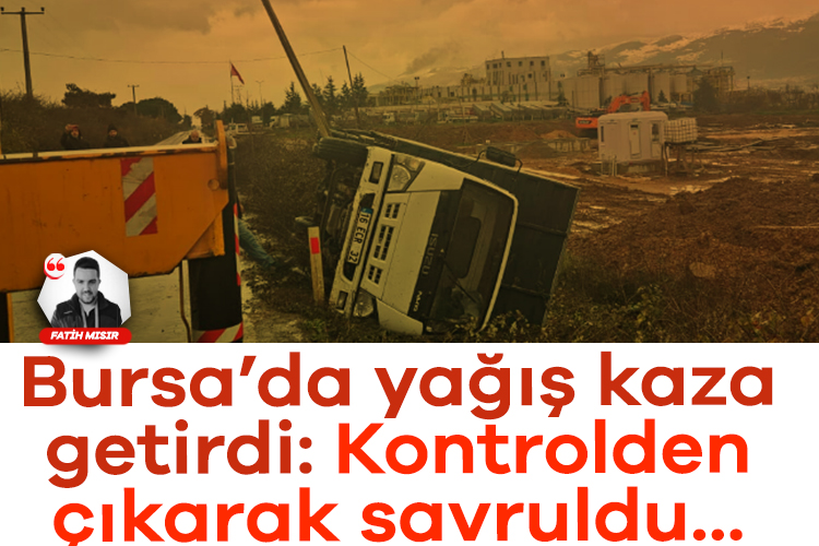 Bursa'nın Orhangazi ilçesinde İznik yolu üzerinde meydana gelen trafik kazasında, yağışlı havada kontrolden çıkan kamyonet yol kenarında devrildi. Kazadan sürücü yara almadan kurtuldu.