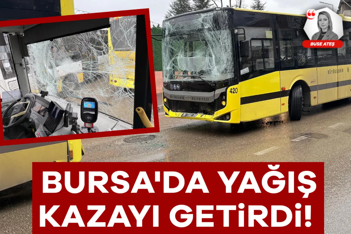 Bursa'nın Yıldırım ilçesi Piremir Mahallesi'nde yağışlı hava kazayı beraberinde getirdi. Kayganlaşan yolda ilerleyen bir otobüs, önünde seyreden başka bir otobüse arkadan çarptı.