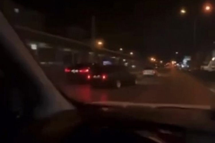 Bursa'da yarışan iki otomobil, trafikte dehşet saçtı. Yarışan otomobillerden biri yolunda seyreden başka bir otomobile çarpmaktan kıl payı kurtulurken o anlar trafikteki başka bir sürücü tarafından kaydedildi.