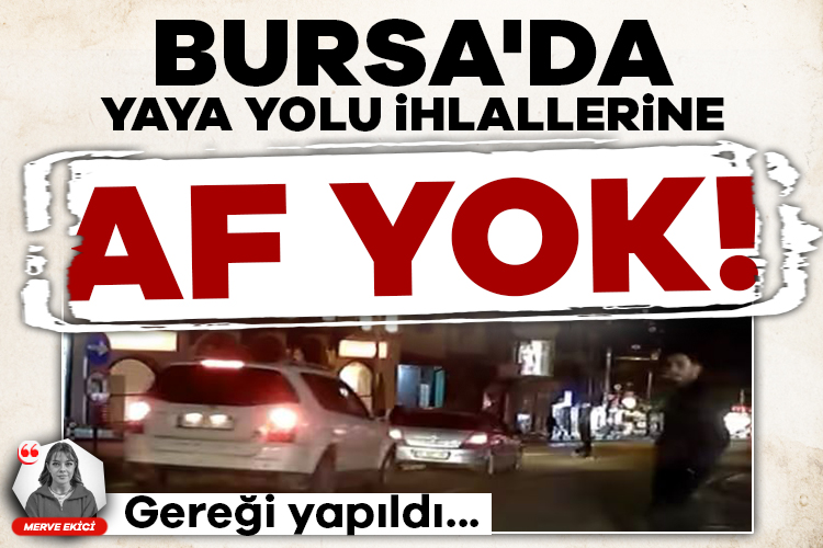 Bursa'nın Osmangazi ilçesine bağlı Altıparmak istikametinde seyir halindeyken yaya geçidinde karşıdan karşıya geçmeye çalışan vatandaşa öncelik vermeyen araç sürücüsü para cezasına çarptırıldı.