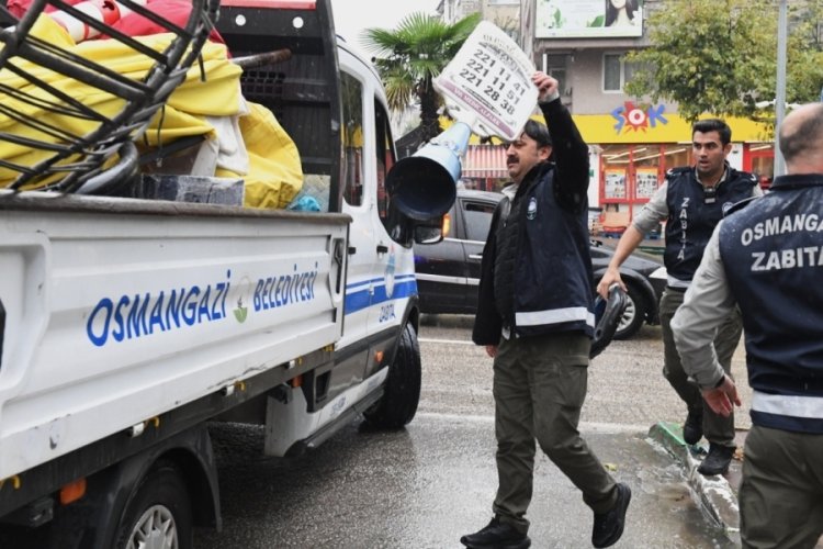 Osmangazi Belediyesi Zabıta Müdürlüğü'ne bağlı ekipler, kaldırım ve yolları işgal eden işyerlerine yönelik operasyon yaptı. Denetimlerde işletmelerin eşyaları toplanarak yollar ve kaldırımlar ulaşılabilir hale getirildi.
